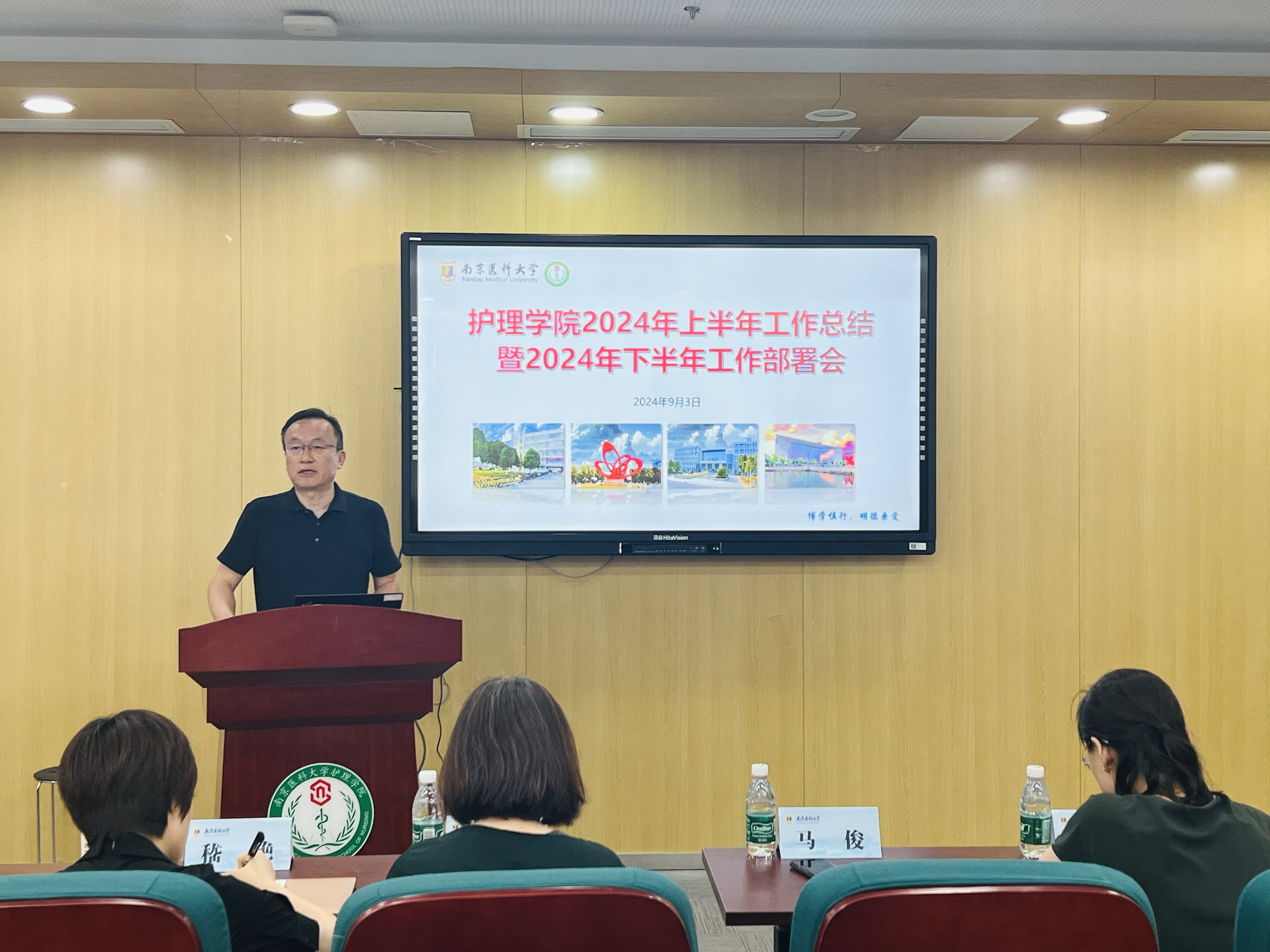 9月3日,我院召开2024年上半年工作总结暨2024年下半年工作部署会。学院领导班子、全体教职工,附属苏州、无锡、常州、泰州、淮安医院的7名护理相关进修教师参加大会。会议的主题是“凝心聚力促发展、千钧重任再扬帆”。会议由九游娱乐(JIUYOU)官方网站_9YOU GAME党委书记马俊主持。