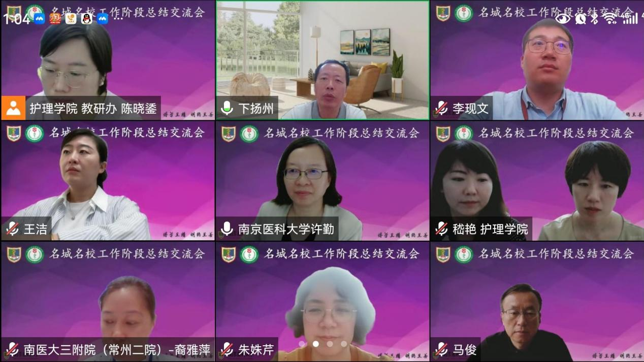 四家附属医院护理部主任分别对一年来的工作开展情况进行汇报交流。附属无锡人民医院护理部曹晓东主任重点汇报在“医教研协同,促进护理高质量发展”总目标指导下,大力开展名城名校“1+2+3”项目方案、提升临床护理学科竞争力的一系列举措、成果及未来展望等。