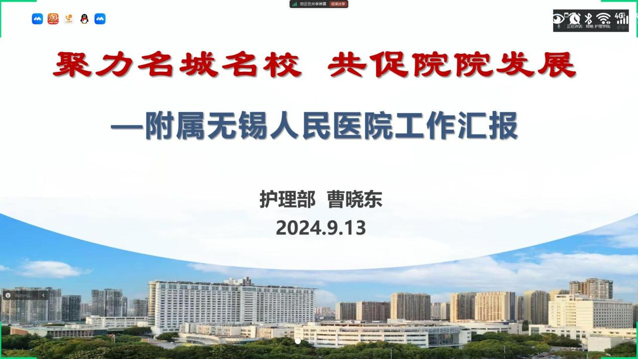 附属泰州人民医院护理部任震晴主任围绕教学活动、科研成果、人才培养等方面进行了详细阐述。护理驻点班今年在附属泰州人民医院首次设点,在九游娱乐(JIUYOU)官方网站_9YOU GAME的大力支持下已顺利开班,未来,希望大力加强院院融合、携手并进,共筑护理学科发展新高度。
