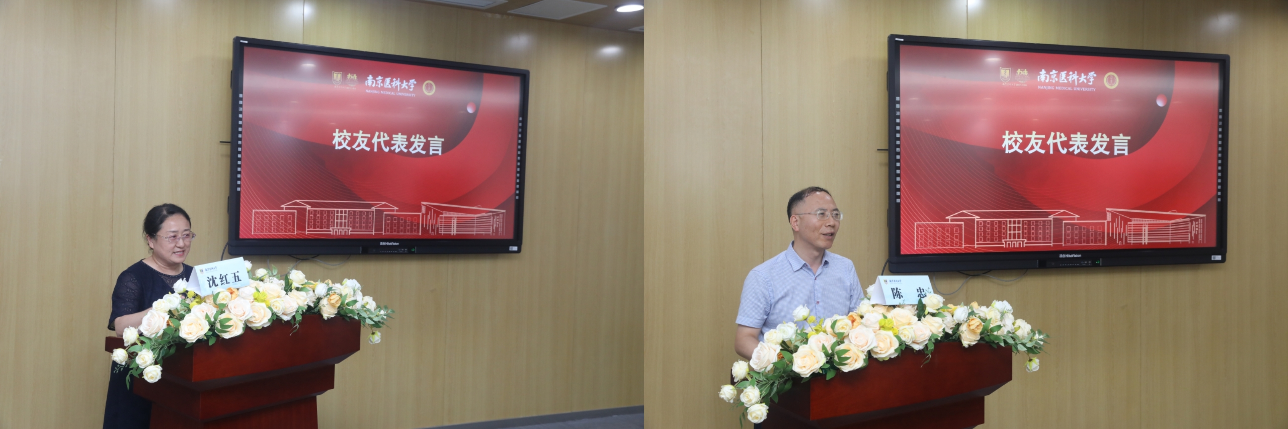 校友代表南通大学附属医院原护理部主任、主任护师沈红五和上海交通大学医学院附属第六人民医院心内科副主任、主任医师陈忠分别发言,感慨当时老师教诲、同窗激励、读书奋斗的场面还历历在目,也向母校汇报了自己的成长经历及学术工作成果。大家对母校的变化和学院的发展,尤其是近年来取得的成绩感到十分自豪和骄傲,同时祝福学院再创辉煌。