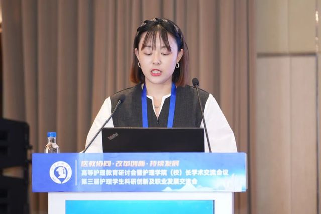 附属脑科医院张戈老师在“教育教学改革与发展”高教分会场进行了题为《“一流本科”建设背景下临床护理师资国际化教学培训项目的实施及效果评价》的大会发言,介绍了学院为提升临床护理教师的教学能力,与英国利物浦大学ICMT项目团队合作设计TLD(Teaching·Learning·Developing)国际化教学培训项目,为双师型护理教师的规范化培养与发展提供了宝贵的经验和洞见。