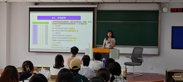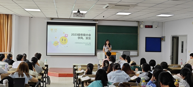 9月30日,2023级安全教育年级大会分别在K418、K420、B210召开。辅导员顾莹老师在会中开展学风教育,总结转专业、留级、休学等学籍异动情况,总结奖学金申报情况,布置学业预警和学风主题班会工作;开展安全教育,包括交通安全、宿舍安全、网络安全等,结合学校相关管理规定和社会新闻警示使用违章电器和网络电信诈骗等的危害;梳理本学期重点工作,包括校庆九十周年、学风建设等。