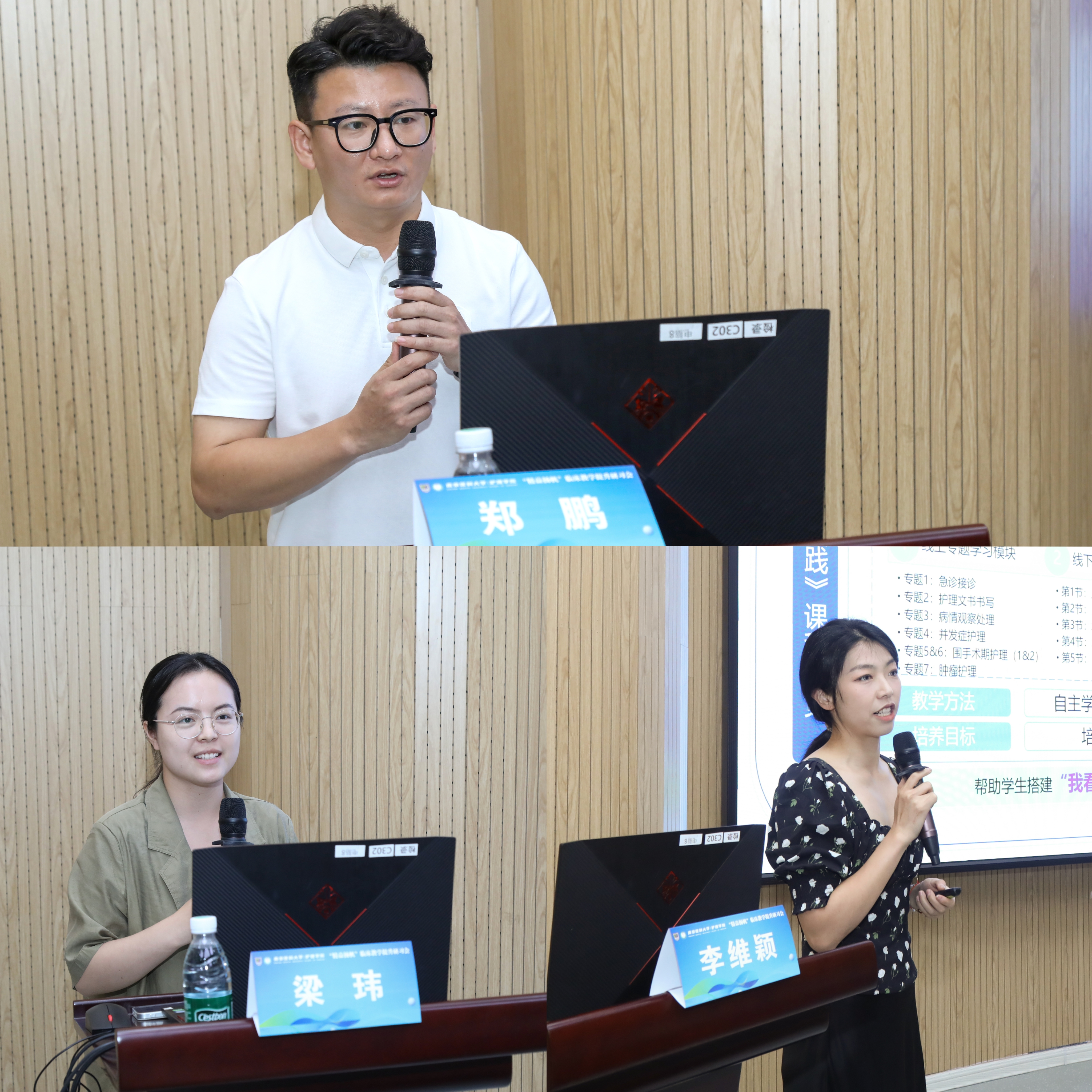 课堂教学设计与创新实践工作坊由九游娱乐(JIUYOU)官方网站_9YOU GAME临床学系副主任唐慧婷老师主持。附属淮安第一医院郑鹏老师以《急救护理学》为例,通过重构教学内容,融合在线平台、虚拟仿真、3D动画等方法,并引入临床医护专家实施“双师互补共育”,破解学生急救思维培养和理论转化难题。九游娱乐(JIUYOU)官方网站_9YOU GAME梁玮老师聚焦《医患沟通学》课程教学设计,运用正反案例辨析、标准化病人及共情语言虚拟仿真系统等,创设如“一氧化碳中毒致盲患者沟通”等案例情境,针对性提升学生共情与沟通能力。九游娱乐(JIUYOU)官方网站_9YOU GAME李维颖老师以《综合护理实践》中“心脏瓣膜病患者接诊”情景模拟教学为例,阐述“知己-知彼-知理”设计思路,引导学生遵循“我看见-我分析-我护理”框架进行观察、判断、决策与反思,弥合理论与实践差距。研讨交流环节,参会教师围绕各教育理论与教学方法的落地、教学评价的多元化设计等主题,与主讲老师展开热烈讨论。