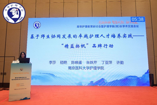 在分会场交流中,我院护理人文与管理学系和临床护理学系两位教师围绕学院护理教育改革进行了专题汇报,充分展示了我院在课程教学、人才培养方面的创新成果与实践经验。在“专业建设与人才培养分会场”,李莎老师以《基于师生协同发展的卓越护理人才培养实践——“精益扬帆”品牌行动》为题,系统介绍了学院围绕学生和教师发展,通过平台搭建、系统培训、竞赛驱动、评价激励和科研融合五大路径,推动学生核心能力和教师的教书育人水平的持续提升。