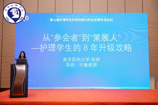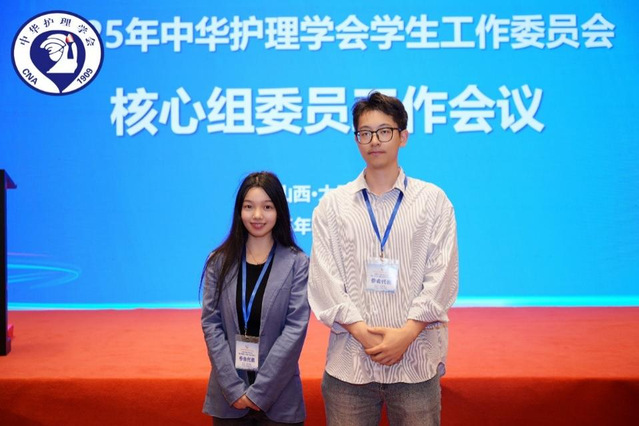 我院博士研究生徐婷、赵康参加2025年中华护理学会学生工作委员全体委员工作会议。中华护理学会高等教育专委会主任委员姜小鹰教授重点介绍委员义务和使命,鼓励学生委员们不断拼搏奋斗,为广大护理同仁树立榜样,为护理事业贡献青年力量。徐婷同学以“从参会者到策展人”为题进行分享,系统梳理了其从实习见习到参与国际组织工作的进阶路径。她围绕国际护士会ICN学生委员经历,深入阐述了护理学生在全球健康治理中如何发声与参与,赢得与会人员热烈反响。
