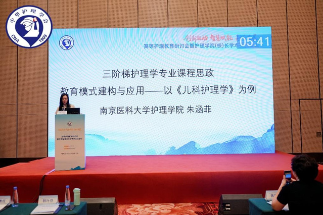 在“教育教学改革与发展分会场”,朱涵菲老师作题为《护理学专业课程思政教育模式的构建与应用——以〈儿科护理学〉为例》的汇报。她聚焦于课程思政理念在专业课程中的内化路径,展示儿科护理教学如何通过价值引领、情境创设和教学互动,实现“润物细无声”的育人效果,推动护理专业教育的内涵式发展。